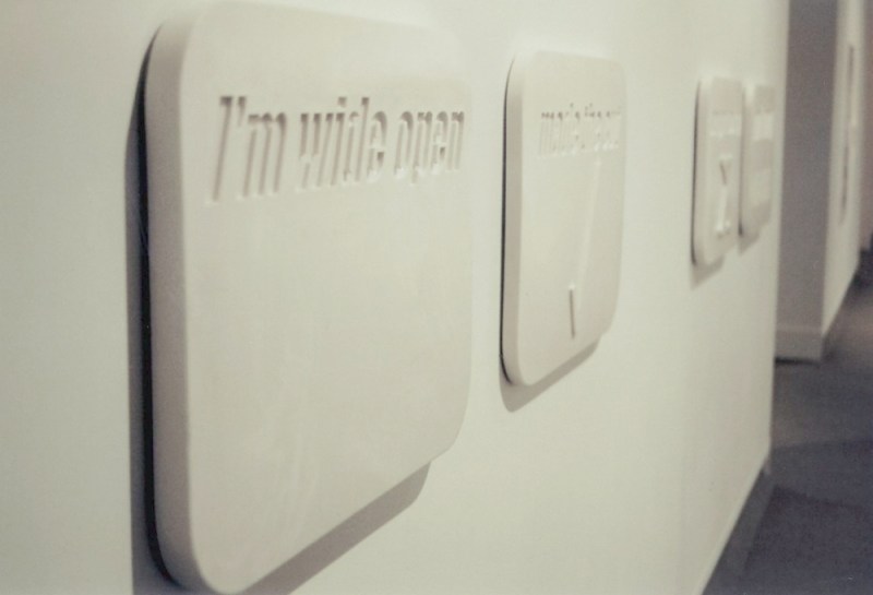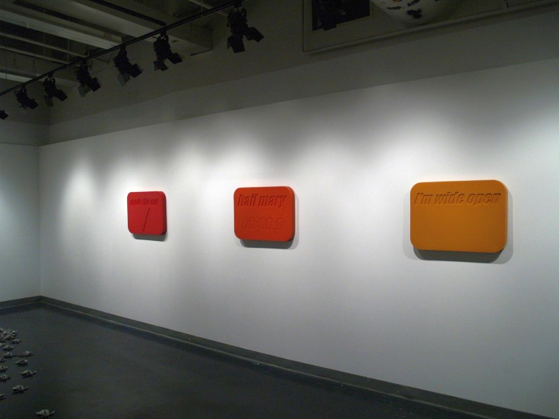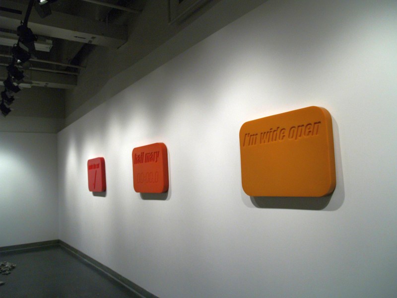 Part confessional, part rescue fantasy, part social commentary, these works repurpose, recontextualize, and reconfigure language and its performative qualities. The idioms, phrases and cliches range from the ambiguous to the inappropriate but they all convey aspects of a universal struggle to become who we are.