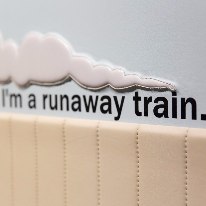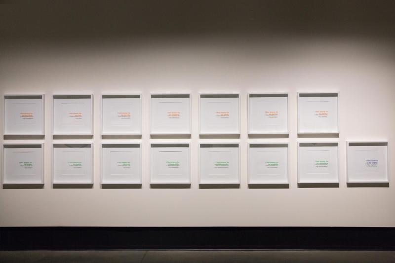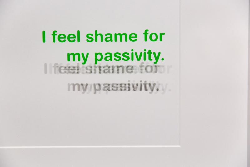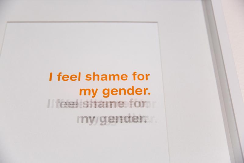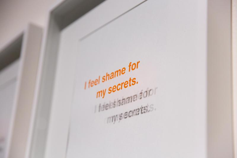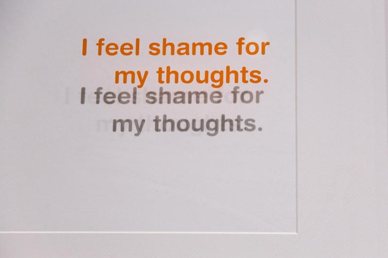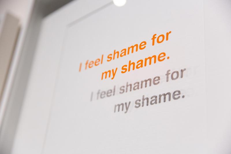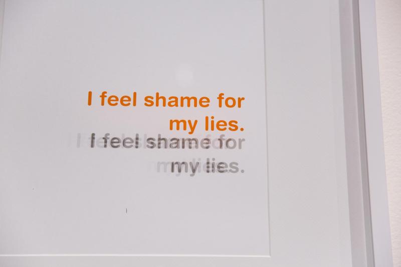 Craig Le Blanc’s materials are the stuff of industry: plate glass, mirrors, industrial lights, car upholstery… things made with machines, from places traditionally associated with men. He transforms each into a ground for linguistic fragments and adages; phrases that run the spectrum of human articulation, from confession to lament to prayer. At times they are boldly stated, at others, barely whispered.